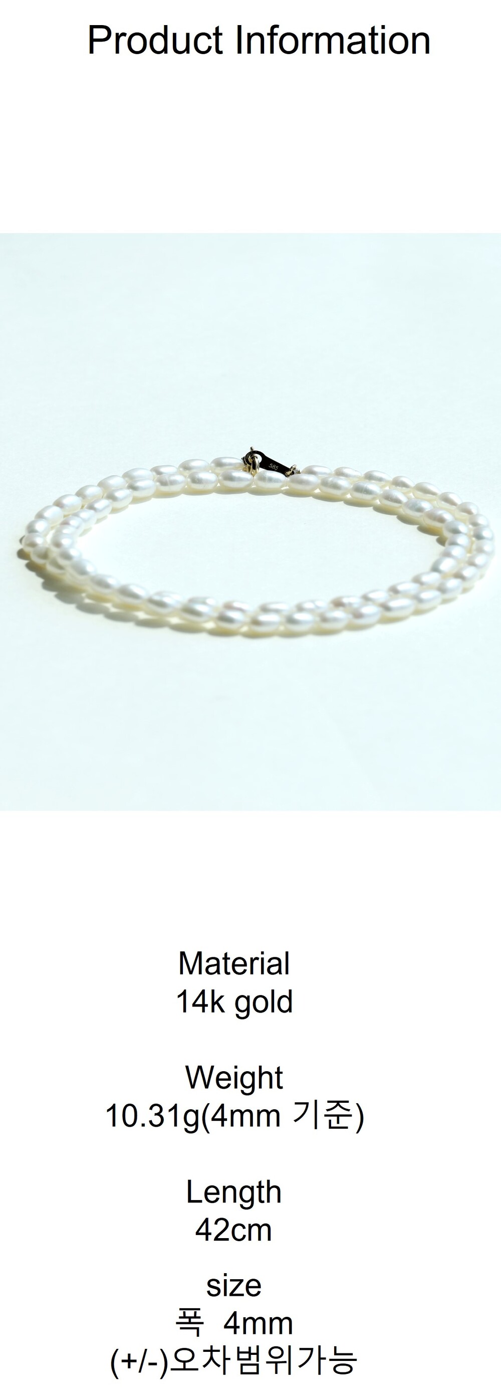 천연 담수 진주 4mm 목걸이입니다.